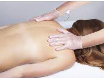 The client holds a small metal bar, and the therapist uses an applicator or gloves for the treatment. During the treatment the client will experience some gentle relaxing vibrations.